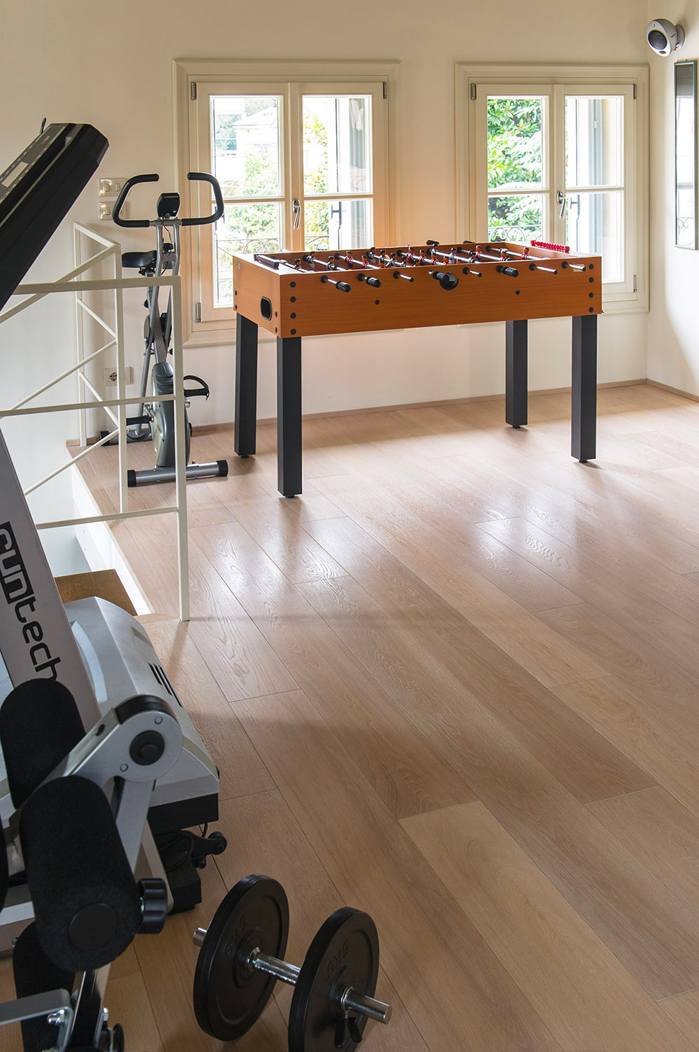 Pavimento palestra: Prefinito 3 strati – Evo Garant / Elegant “effetto cera” – PERLA spazzolato