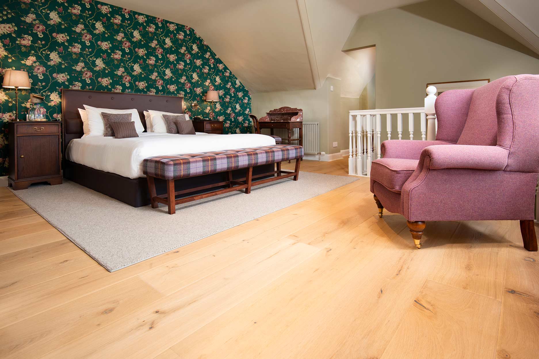 “Abbiamo scelto Forever 1919 perché abbiamo bisogno di un parquet duraturo e di alta qualità per lo Schoßhotel Roxburghe, che promette un’elevata durabilità e robustezza grazie allo strato di usura in legno massiccio di 6 mm, ed è progettato appositamente per le aree pubbliche.
