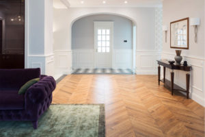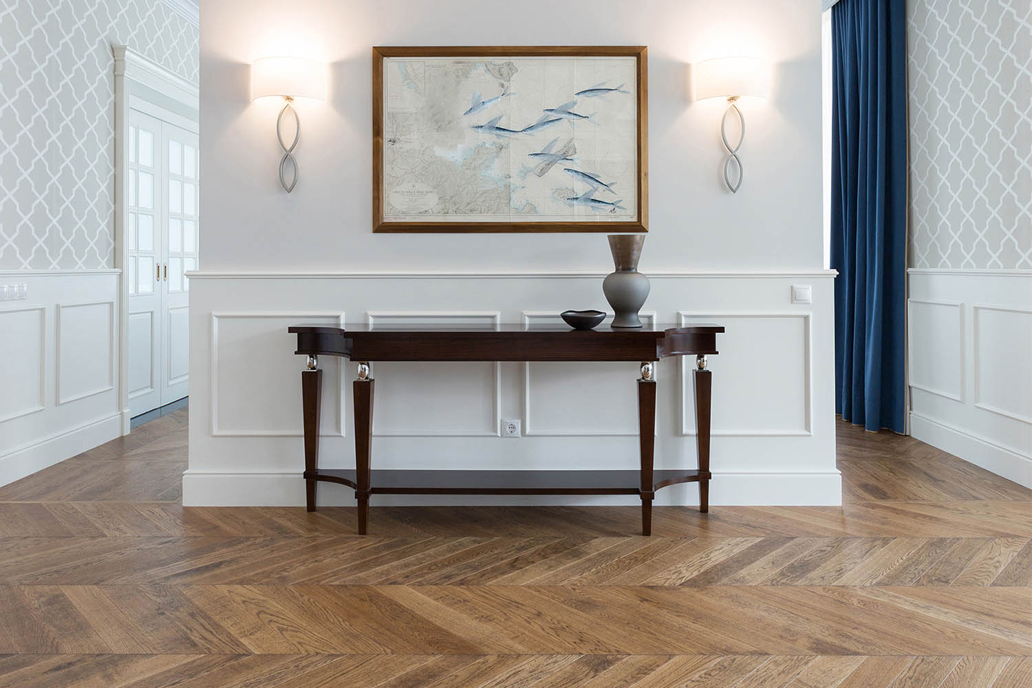 Pavimento: Cognac anticato spina 45° – Rovere Europeo leggermente spazzolato